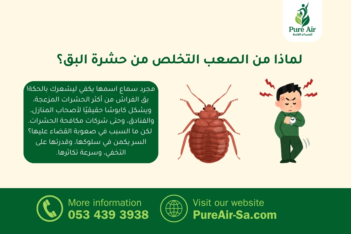 يُعد بق الفراش من أكثر الحشرات إزعاجًا وخطورة على راحة الإنسان وصحته. هذه الحشرة الصغيرة تختبئ في الشقوق والزوايا وتهاجمك ليلًا أثناء النوم، مسببة الح...